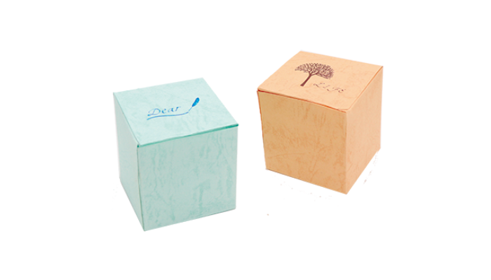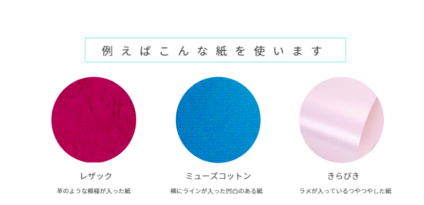 特殊紙は紙自体に加工が施されており、味があるため、デザインはシンプルがベスト!型を作って型抜きをする場合ロットはそこそこ多い方がオススメです。小物を入れる場合に適したパッケージです。箔押し・浮き出し加工を付けると高級感が増します。